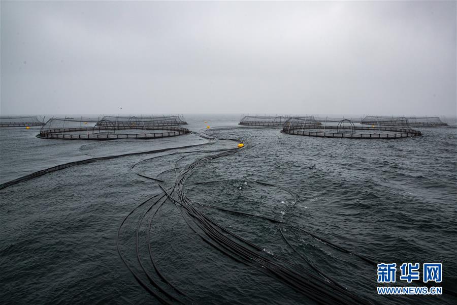 這是9月13日在俄羅斯摩爾曼斯克以北的巴倫支海域拍攝的隸屬于俄羅斯水產養(yǎng)殖公司的鮭魚養(yǎng)殖場。 新華社記者白雪騏攝