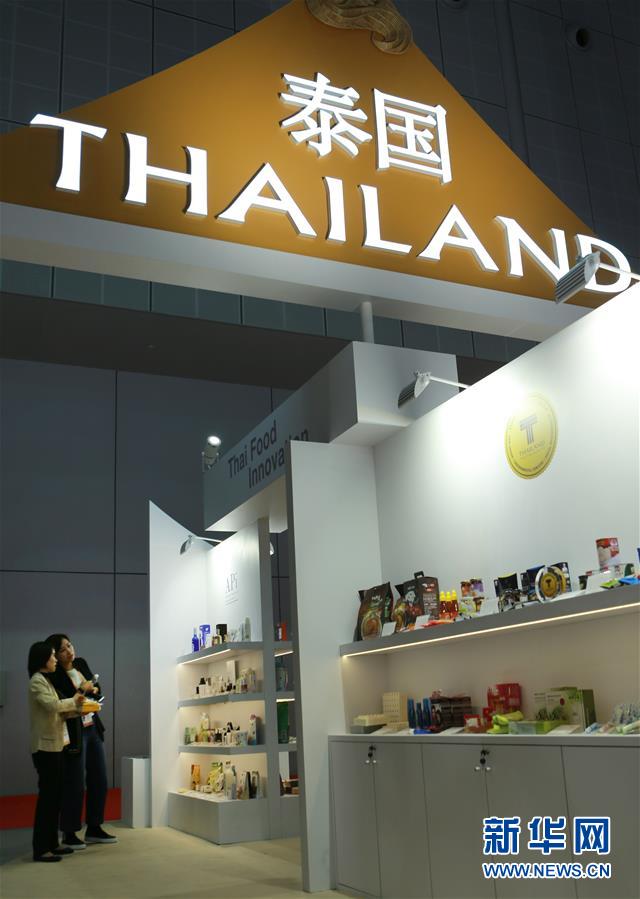 11月5日,參觀者在第二屆進博會泰國國家館觀看特色產(chǎn)品。新華社記者鄭衛(wèi)攝