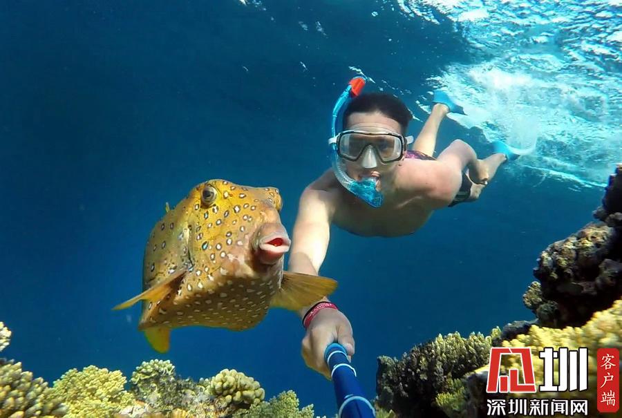 017年8月4日?qǐng)?bào)道(具體拍攝時(shí)間不詳),白俄23歲女子Vladislav Starastsenka在埃及沙姆沙伊赫水域潛游時(shí)邂逅一條可愛的盒子魚,這家伙看到Vladislav在自拍后立即湊上前去露了一臉,對(duì)著鏡頭嘟嘴賣萌,畫面十分搞笑。