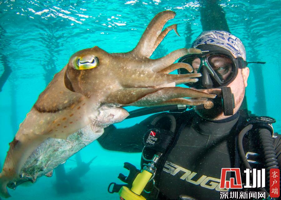2019年11月12日?qǐng)?bào)道(具體拍攝時(shí)間不詳),許多潛水愛好者都會(huì)把遇見海底動(dòng)物當(dāng)作一種幸運(yùn),但如果它們過分熱情,你能扛得住嗎?