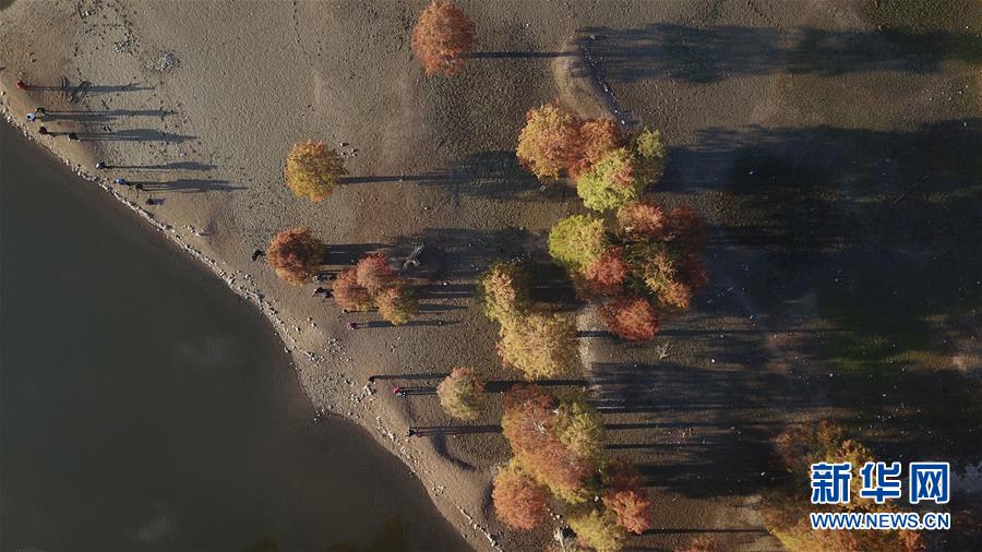 11月14日無人機拍攝的安徽黟縣奇墅湖晨景。新華社記者張端攝