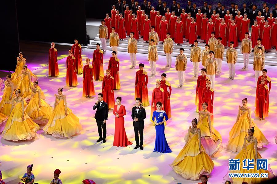 11月19日,演員代表在第28屆中國金雞百花電影節(jié)開幕式上演唱歌曲《星辰大海》。新華社記者姜克紅攝