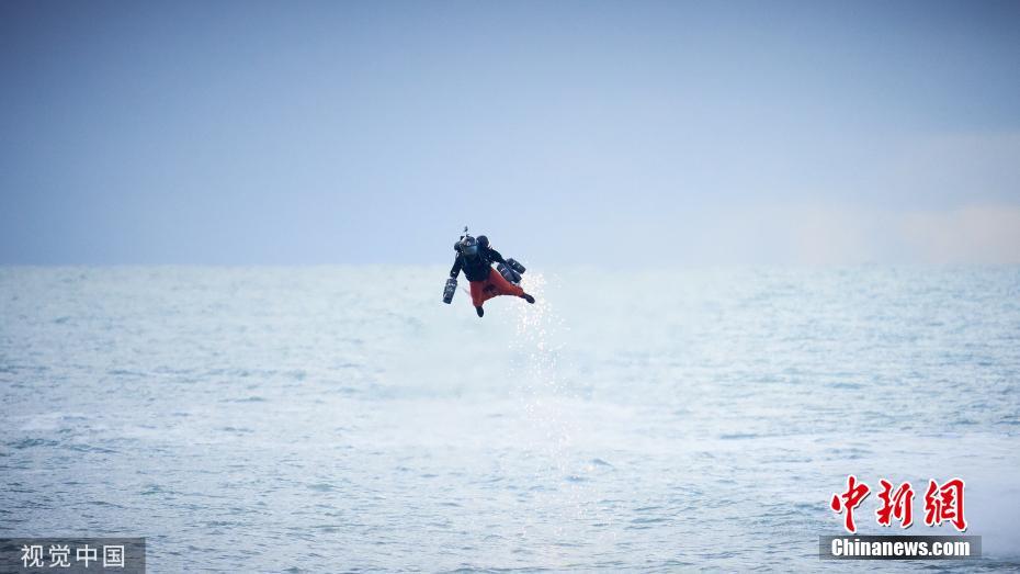 11月18日訊,英國布萊頓,英國發(fā)明家理查德·布朗寧穿著一套由身體控制、噴氣發(fā)動機驅(qū)動、風(fēng)力導(dǎo)向的飛行服,以高達(dá)每小時85.06英里(約137公里)的飛行速度,打破了自己創(chuàng)下的噴氣式飛行服速度的吉尼斯世界紀(jì)錄。圖片來源:視覺中國
