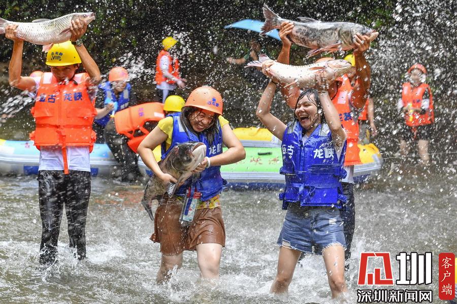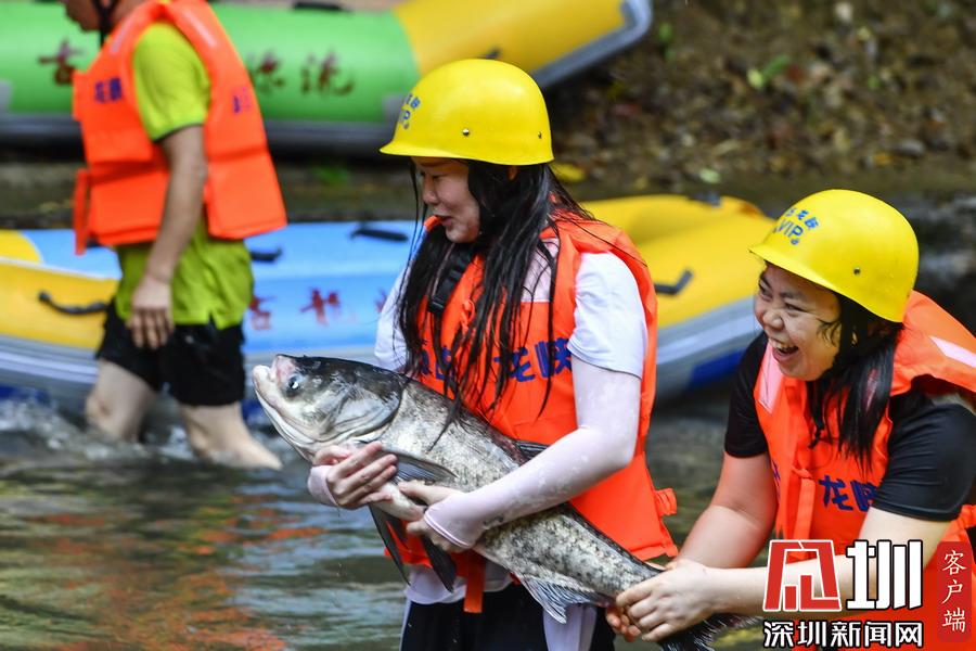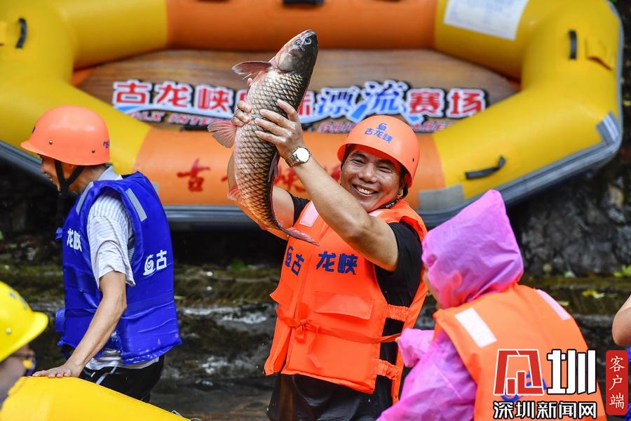 “韋帕”剛登陸廣東,清遠(yuǎn)古龍峽漂流景區(qū)就開(kāi)始泄洪,上萬(wàn)斤水庫(kù)大魚(yú)隨著泄洪道“越獄”,引來(lái)上千名游客下艇捕魚(yú),漂流河道上演了幾個(gè)小時(shí)的“人魚(yú)”大戰(zhàn),有的捕魚(yú)高手竟然捉了一漂流艇的魚(yú)回家。