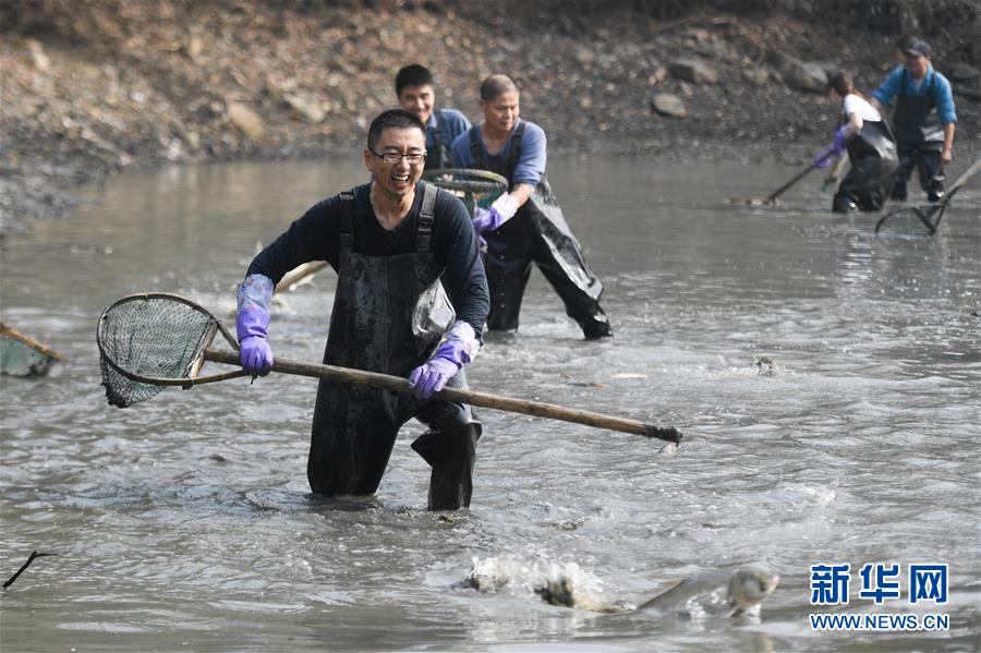 11月24日,游客在西溪濕地體驗(yàn)“干塘”捕魚(yú)。新華社記者黃宗治攝