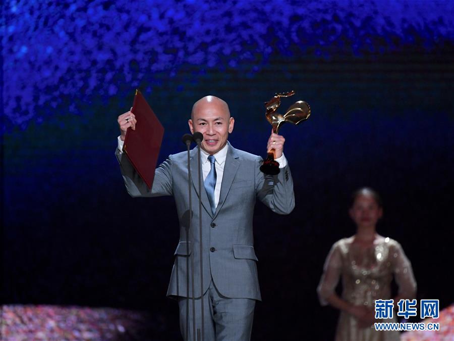 11月23日,電影《紅海行動》導演林超賢獲得最佳導演獎。 當日,第32屆中國電影金雞獎頒獎典禮在福建廈門舉行。 新華社記者姜克紅攝