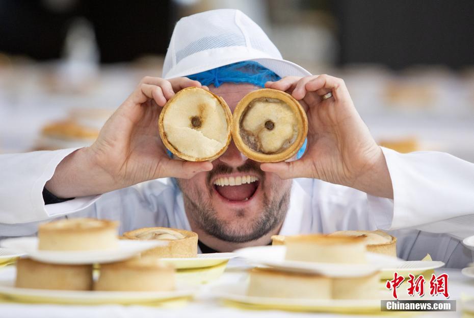 當(dāng)?shù)貢r間2019年11月20日,英國蘇格蘭丹弗姆林(Dunfermine),第21屆世界蘇格蘭派錦標(biāo)賽在當(dāng)?shù)嘏e行。據(jù)悉,參賽作品被分為包括足球餡餅、咸味小吃和通心粉派等11個種類。圖片來源:視覺中國