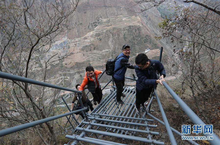 幾名游客在通往阿土列爾村的鋼梯上攀爬(11月23日攝)。新華社記者江宏景攝