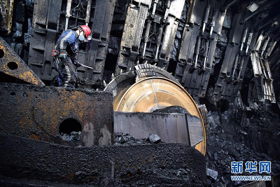 11月26日,在上灣煤礦12402綜采面內(nèi),工作人員對(duì)采煤機(jī)進(jìn)行檢修。