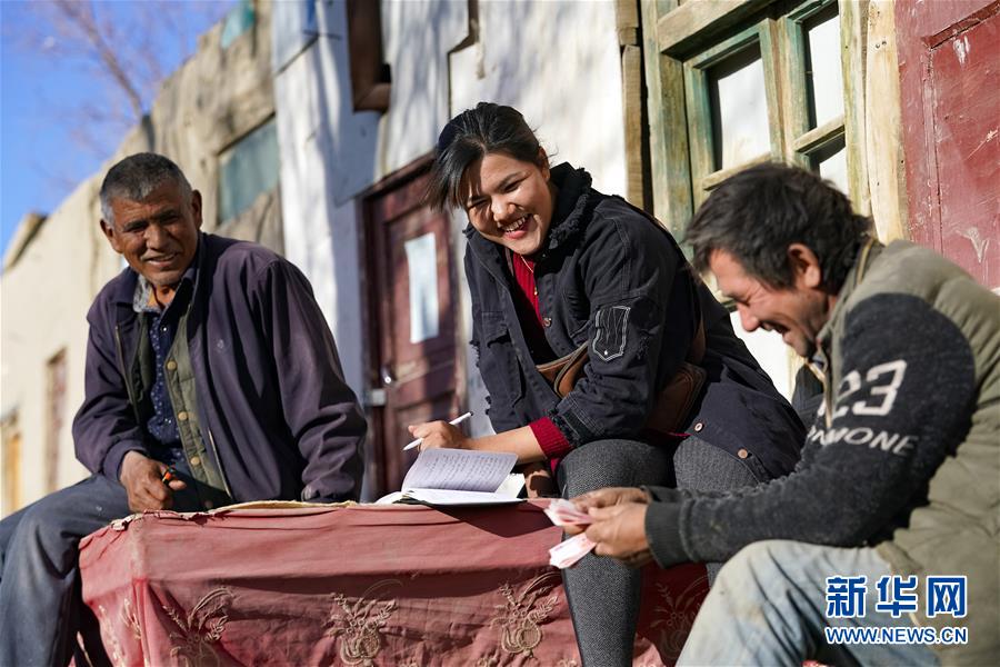 在地處塔克拉瑪干沙漠腹地的新疆于田縣達(dá)里雅布依鄉(xiāng),庫(kù)爾班罕·買(mǎi)提肉孜(中)與養(yǎng)羊合作社的合作伙伴結(jié)算購(gòu)買(mǎi)羊肉的費(fèi)用(11月13日攝)。