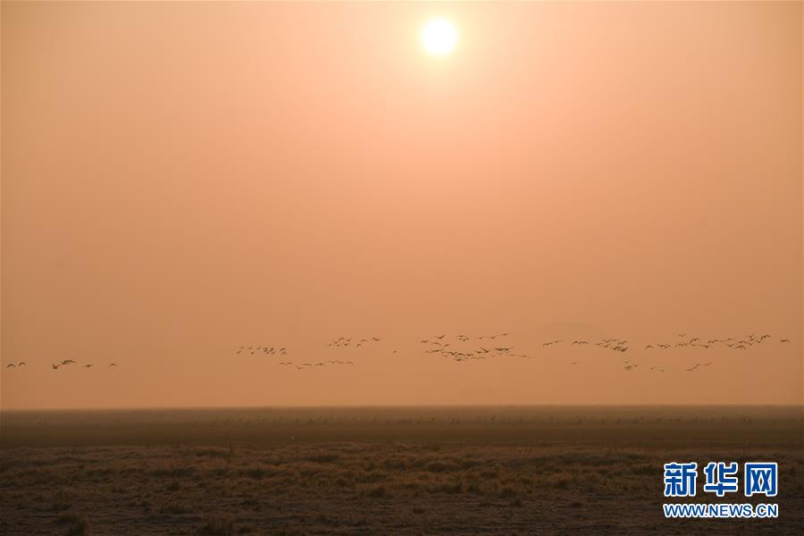 一群候鳥在升金湖上空飛翔(12月7日拍攝)。新華社記者張端攝