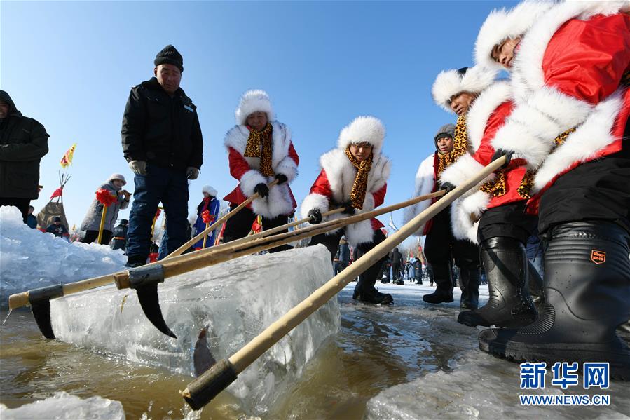 12月7日,人們?cè)诓杀?jié)現(xiàn)場(chǎng)采“頭冰”。當(dāng)日,哈爾濱采冰節(jié)在冰封雪覆的松花江哈爾濱段江面上開(kāi)幕,精彩的采冰儀式和表演吸引了眾多冰城市民和游客前來(lái)欣賞、互動(dòng)。新華社記者王建威攝