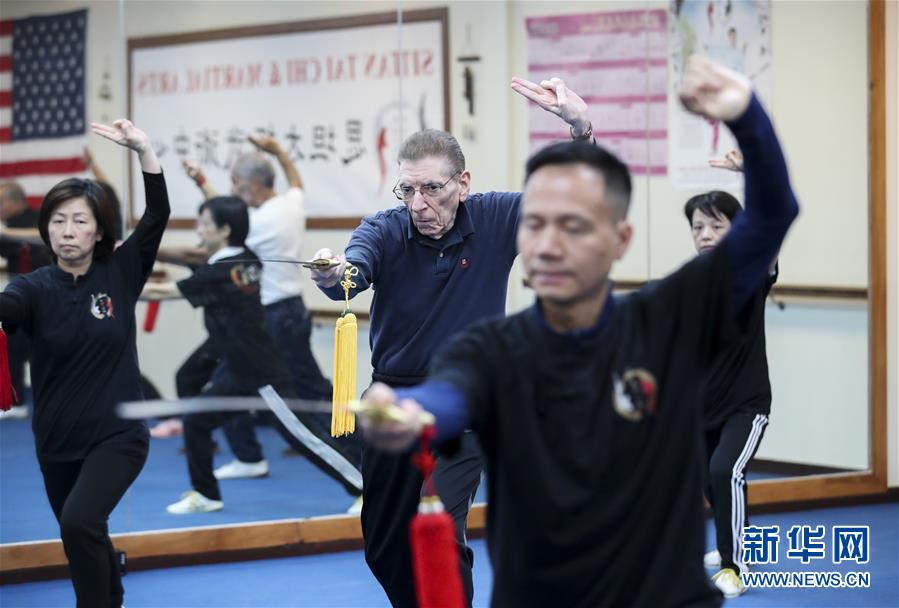 陳思坦在位于美國紐約長島的思坦太極武術(shù)中心帶學(xué)員練習(xí)太極劍(11月20日攝)。11月的紐約已進(jìn)入初冬,位于美國紐約長島的思坦太極武術(shù)中心依然一片紅火景象,學(xué)員們從5歲的孩童到80多歲的老人,操練著太極拳、太極劍、長拳等武術(shù)招式。這里的主人陳思坦、林旭夫婦,也從早忙到晚,精心指導(dǎo)每一位學(xué)員的一招一式。6歲習(xí)武,22歲成為中國全國冠軍,26歲獲得首個(gè)世界冠軍……直到30歲退役,陳思坦在運(yùn)動(dòng)員生涯中曾獲得過32次國內(nèi)外各類武術(shù)大賽冠軍。36歲那年,懷著以太極拳和中國武術(shù)為媒介向世界推廣中國文化的夢想,陳思坦到美國紐約尋找新的舞臺(tái)。經(jīng)過十多年的艱苦打拼,陳思坦夫婦目前在紐約長島、法拉盛和曼哈頓都開設(shè)了長期的課程,思坦太極注冊在編的各個(gè)年齡段的學(xué)員近千人,有些“高徒”現(xiàn)在自己也開班授課,將太極推向更多地方。陳思坦夫婦現(xiàn)在思考更多的是如何將太極和武術(shù)推廣給更多的美國人,并讓他們理解其中蘊(yùn)含的平衡、和諧的中國文化理念。他們創(chuàng)辦了紐約太極健身氣功活動(dòng)日,在各類學(xué)校和社區(qū)開設(shè)太極或者武術(shù)課程,并利用美國的亞太裔文化月和多元文化節(jié)舉行武術(shù)和太極表演和體驗(yàn)課程,讓更多美國人親眼看到、親身體會(huì)中國武術(shù)的魅力。從2011年起,他們還參與創(chuàng)辦了紐約太極大賽,如今已舉行九屆,吸引了美國、加拿大和中國國內(nèi)的隊(duì)伍參賽,影響力逐漸擴(kuò)大。新華社記者王迎攝