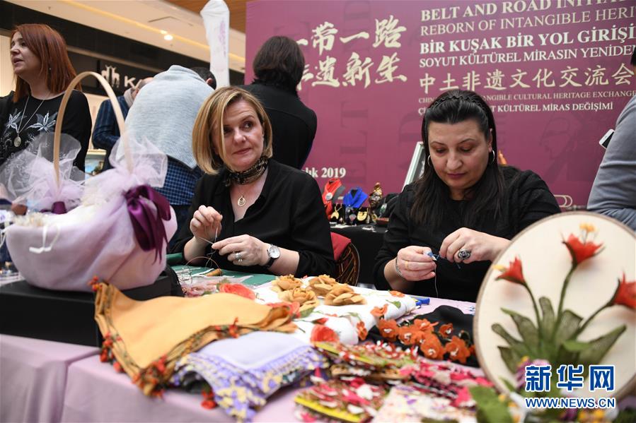 “一帶一路非遺新生”中土非物質(zhì)文化遺產(chǎn)文化交流會6日在土耳其最大城市伊斯坦布爾舉行,中土兩國女性非物質(zhì)文化遺產(chǎn)傳承人同臺展演。