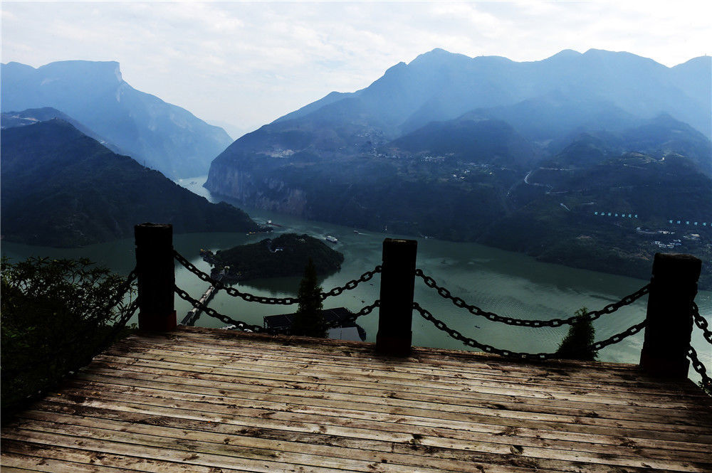 2019年11月3日,重慶,位于魚(yú)腹山懸崖、紫陽(yáng)城遺址的觀景臺(tái)。