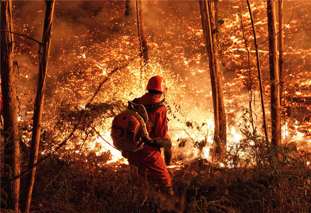 2019年12月7日凌晨一時(shí)多,廣東佛山,來(lái)自英德東華鎮(zhèn)的消防員們摸黑上山作業(yè)。經(jīng)過(guò)大約一個(gè)小時(shí)的奮戰(zhàn)后,山頭明火得到有效控制。