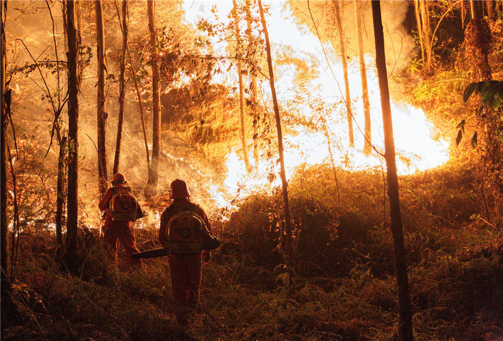 2019年12月7日凌晨一時多,廣東佛山,來自英德東華鎮(zhèn)的消防員們摸黑上山作業(yè)。經(jīng)過大約一個小時的奮戰(zhàn)后,山頭明火得到有效控制。