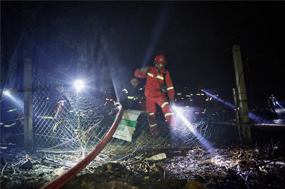 2019年12月7日凌晨一時(shí)多,廣東佛山,來自英德東華鎮(zhèn)的消防員們摸黑上山作業(yè)。經(jīng)過大約一個(gè)小時(shí)的奮戰(zhàn)后,山頭明火得到有效控制。
