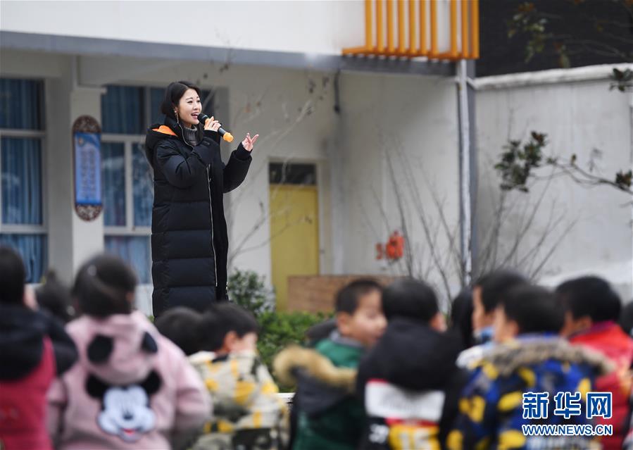 12月12日,文藝志愿者在中益鄉(xiāng)小學演唱歌曲《天路》。新華社記者 王全超 攝