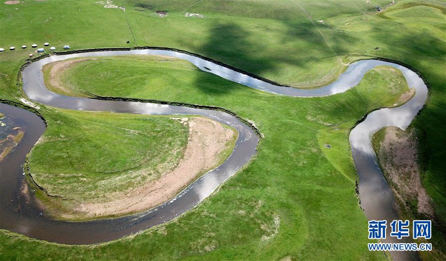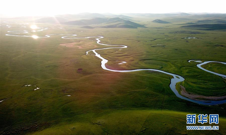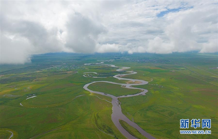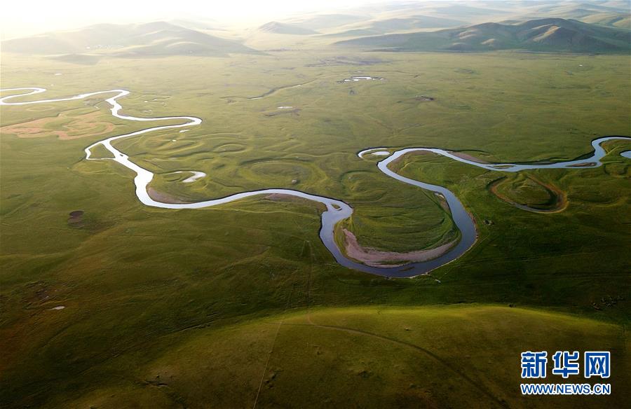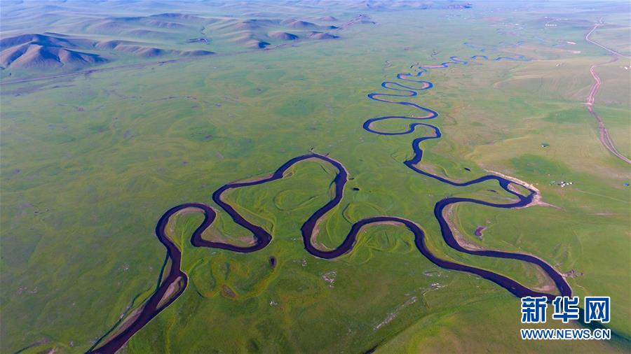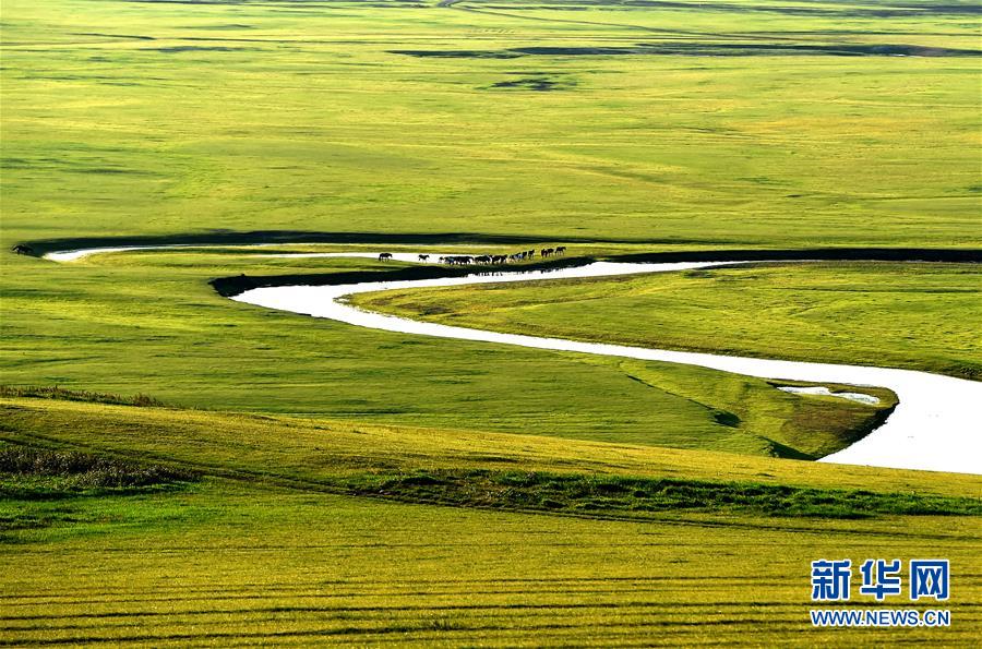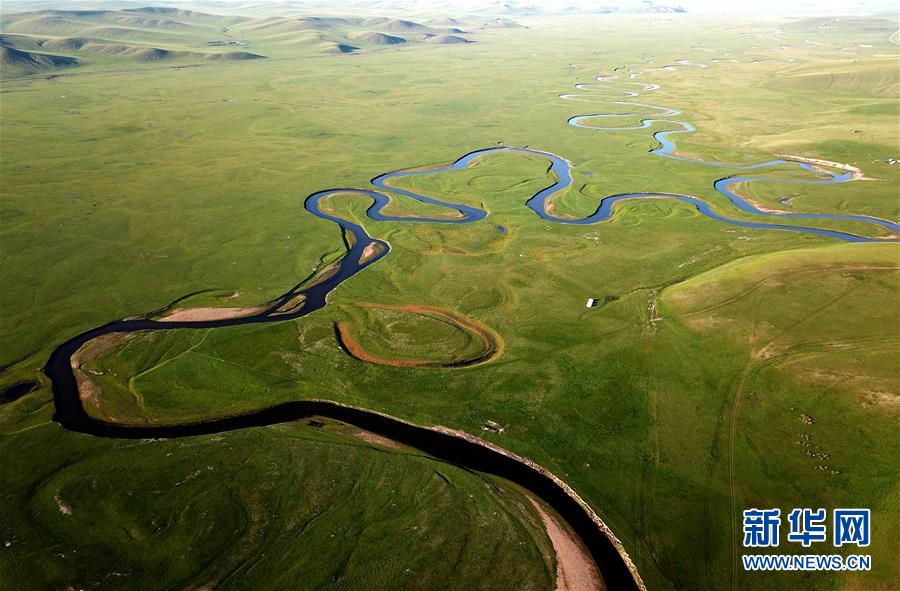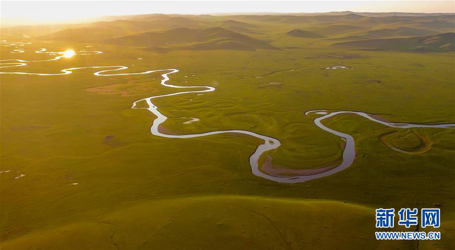8月26日無人機(jī)拍攝的伊敏河(全景照片)。伊敏河流經(jīng)呼倫貝爾草原。新華社記者沈伯韓攝