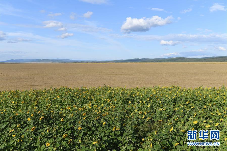 8月28日無人機(jī)拍攝的呼倫貝爾市額爾古納市室韋農(nóng)牧場的田園風(fēng)光。新華社記者劉磊攝