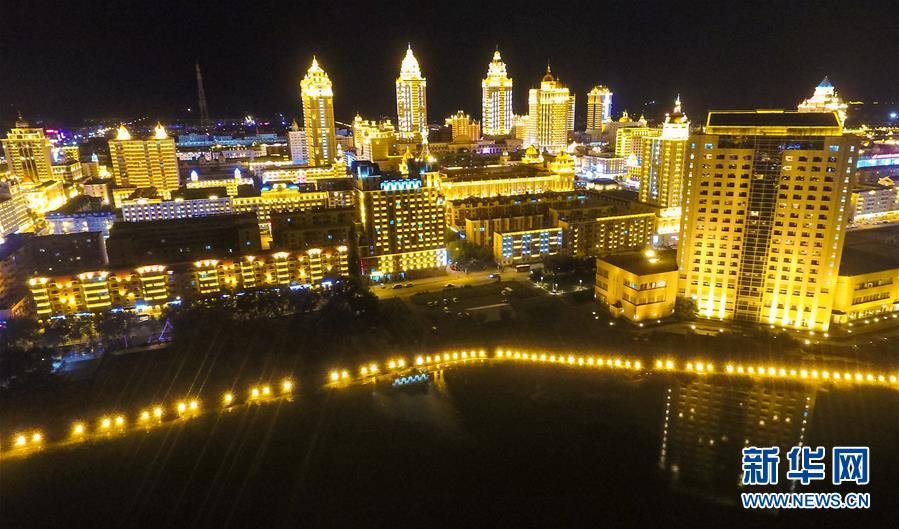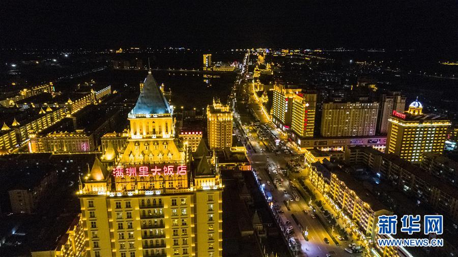 8月28日無人機(jī)拍攝的滿洲里市中心夜景。滿洲里市位于呼倫貝爾大草原腹地。新華社記者沈伯韓攝