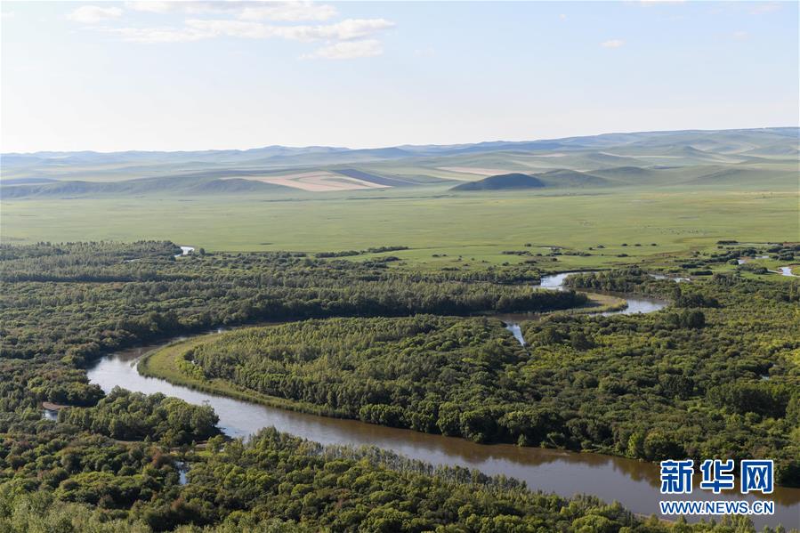 8月29日無人機(jī)拍攝的內(nèi)蒙古呼倫貝爾市陳巴爾虎旗境內(nèi)的莫日格勒河局部。新華社記者彭源攝