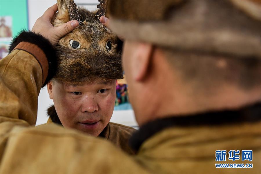 12月10日,在古里鄉(xiāng)非遺傳習(xí)所,鄂倫春族人吳曲忠在整理一件皮制衣服。新華社記者劉磊攝