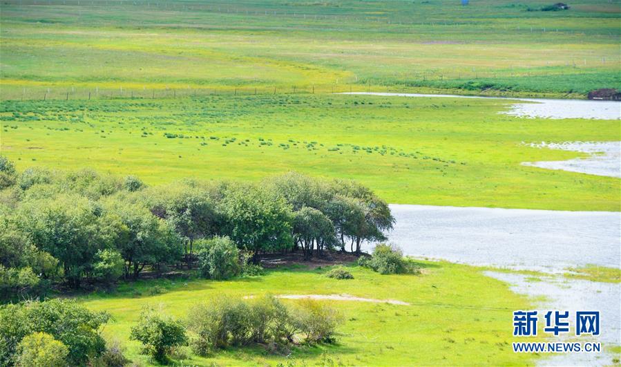 8月27日無人機(jī)拍攝的呼倫貝爾草原呼和諾爾湖。新華社記者任軍川攝