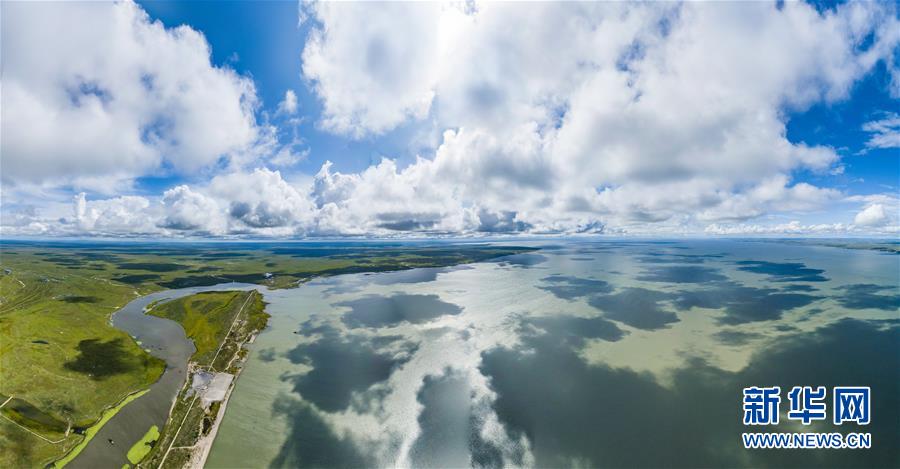8月28日無人機(jī)拍攝的呼倫湖國家級自然保護(hù)區(qū)。新華社記者任軍川攝