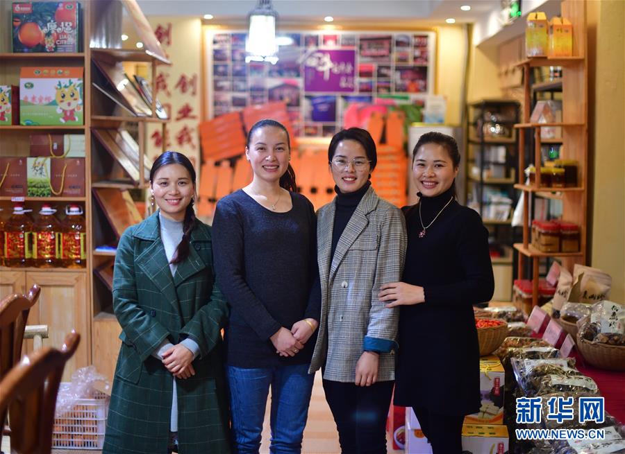 李柳萍和員工在特產館里工作(12月14日攝)。新華社記者黃孝邦攝