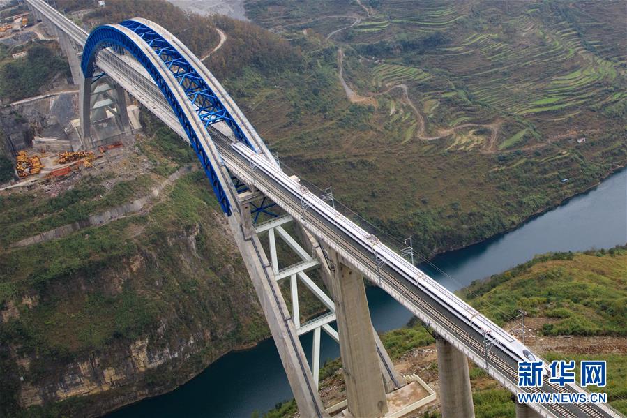 12月2日,一輛試驗(yàn)列車駛過成貴高鐵鴨池河特大橋。當(dāng)日,正在進(jìn)行聯(lián)調(diào)聯(lián)試的成貴高鐵進(jìn)入全線拉通空載模擬運(yùn)行階段,試驗(yàn)列車將在成都到貴陽區(qū)間內(nèi)全線路運(yùn)行。線路全長650公里的成貴高鐵是我國“八縱八橫”高速鐵路網(wǎng)的重要組成部分,設(shè)計(jì)時速為250公里。新華社記者劉續(xù)攝