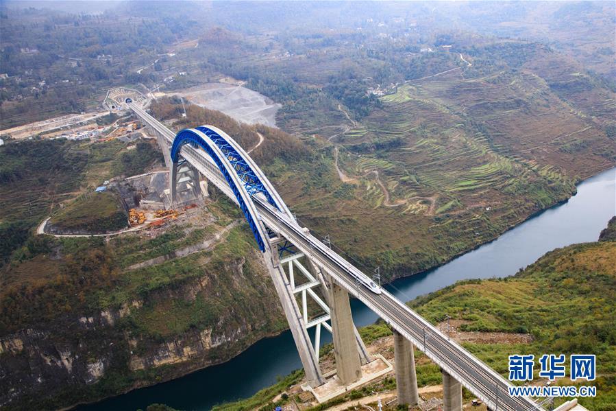 12月16日,一列動車組列車從成貴高鐵西溪河大橋上駛過。新華社記者楊文斌攝