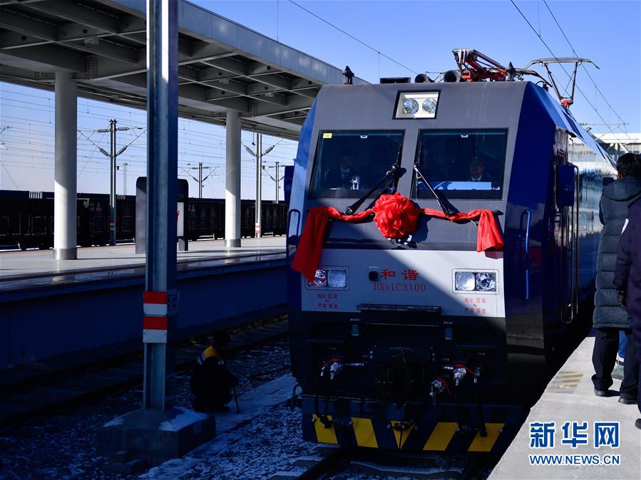 12月18日,在青海格爾木,列車駛出格爾木站。當日,隨著肅北至馬海區(qū)段通車,敦煌鐵路全線開通運營,中國西北地區(qū)形成首條環(huán)形鐵路網(wǎng)。新華社記者張龍攝
