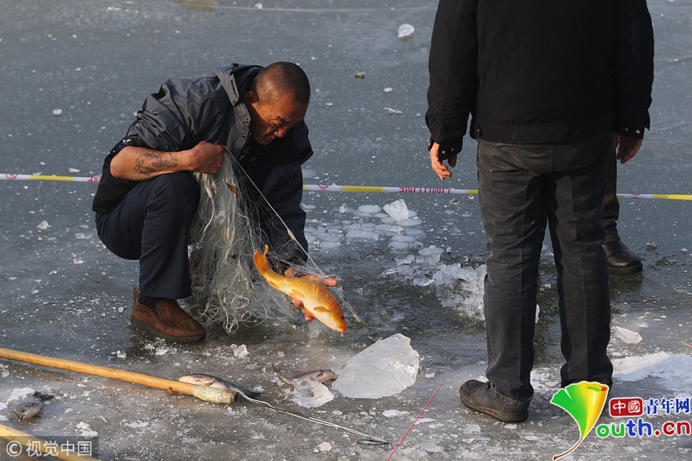 2018年12月26日,吉林松原,查干湖迎來了“紅網(wǎng)”,單網(wǎng)捕撈約30萬斤。