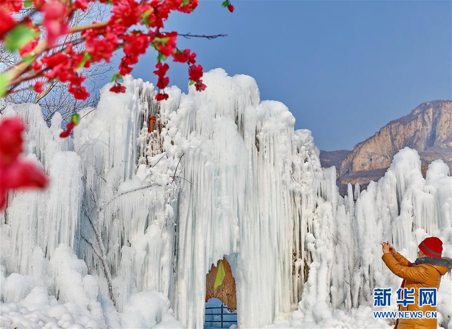 12月25日,游客在平山縣沕沕水景區(qū)拍攝冰瀑美景。新華社記者楊世堯攝