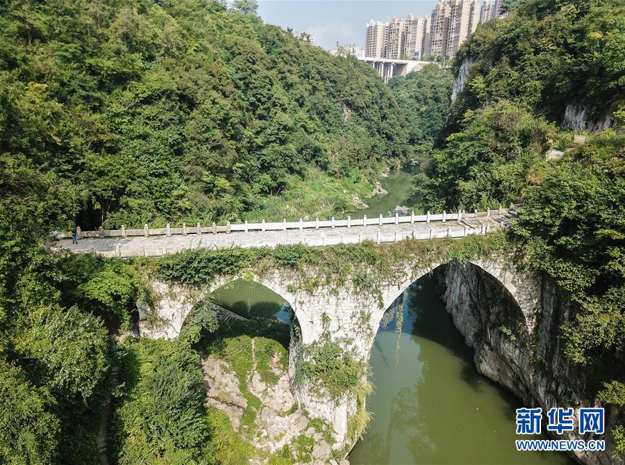 位于貴州省福泉市,修建于明代的葛鏡橋被橋梁專家茅以升譽為“西南橋梁之冠”(8月21日無人機拍攝)。新華社記者陶亮攝