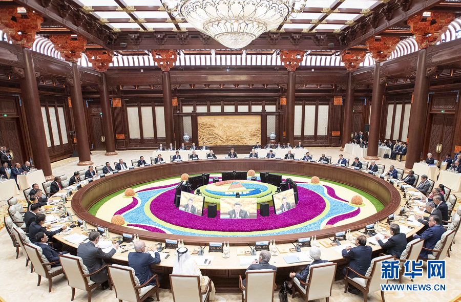 這是4月27日,第二屆“一帶一路”國際合作高峰論壇在北京雁棲湖國際會議中心舉行圓桌峰會,國家主席習(xí)近平主持會議并致開幕辭。 新華社記者 李濤 攝