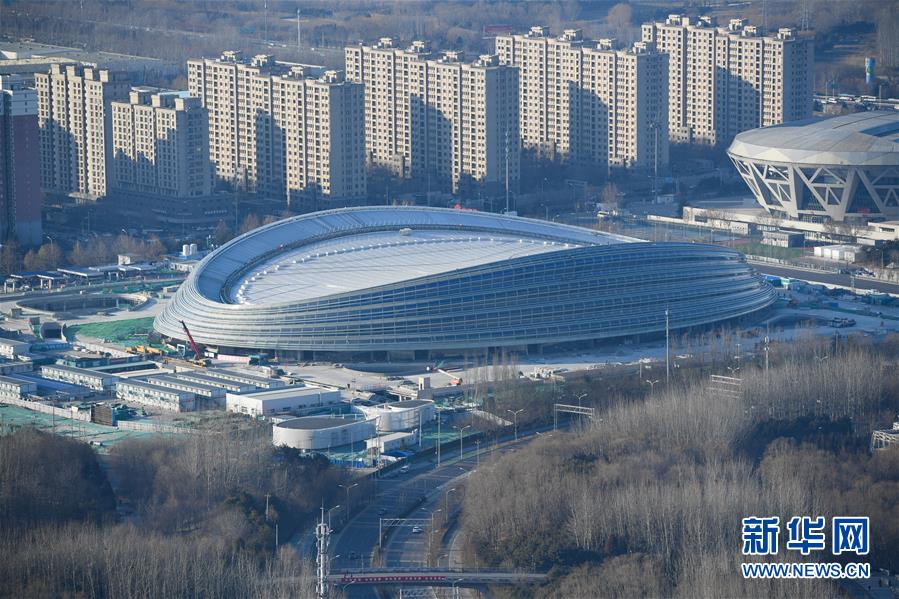 這是12月31日拍攝的實(shí)現(xiàn)封頂封圍的國家速滑館。新華社記者鞠煥宗攝