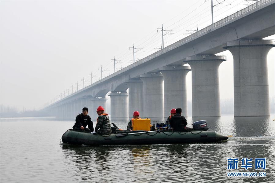 1月3日,中國(guó)鐵路濟(jì)南局鐵道戰(zhàn)備舟橋處工程人員駕駛船只前往預(yù)定地點(diǎn)。新華社記者 朱崢攝