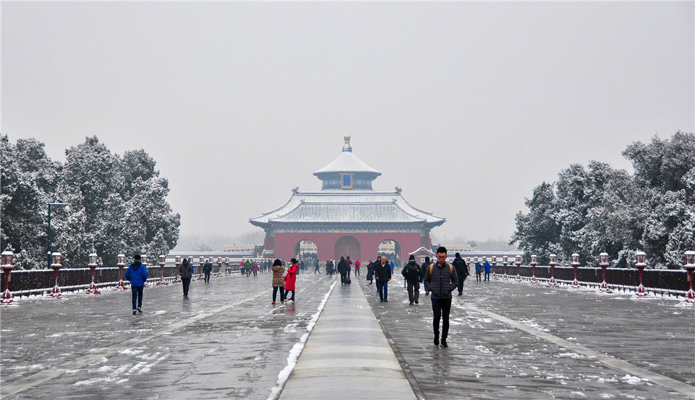 2019年11月30日,北京,初雪過后,天壇公園銀裝素裹,白雪古建相互映襯,景色迷人。時永平/千龍圖像/視覺中國