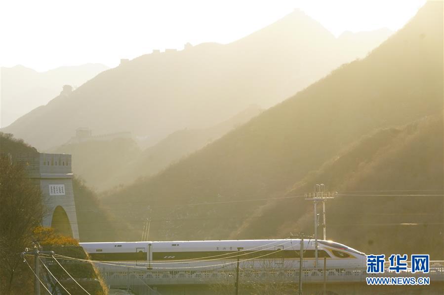 2019年12月30日,G2418次列車駛過居庸關(guān)長城。當(dāng)日,北京至張家口高速鐵路開通運營。 新華社記者 邢廣利 攝
