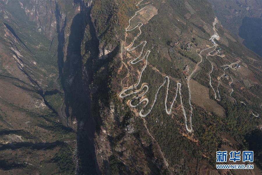 俯瞰布拖縣烏依鄉(xiāng)阿布洛哈村通村公路的起點拉果鄉(xiāng)偉木村。從拉果鄉(xiāng)政府到阿布洛哈村通村公路的起點位置要經(jīng)過54個回頭彎(2019年12月7日攝)。 2019年12月31日,四川涼山彝族自治州布拖縣烏依鄉(xiāng)阿布洛哈村的懸崖擺渡車正式運行,四川最后一個“無公路村”打通了對外通道,改變了閉塞的交通狀況。 阿布洛哈村三面環(huán)山,幾乎全是懸崖絕壁;一面依水,金沙江支流西溪河流淌而過。以前,村民們進(jìn)出村需攀爬懸崖上鑿出來的一條小路;村里的物資主要靠馬馱人背,走一趟要3個多小時。交通成為村里脫貧攻堅最大的“硬骨頭”,全村65戶253人,目前仍有建檔立卡貧困戶29戶182人。 為打通交通瓶頸,當(dāng)?shù)卣疀Q定修建一條3.8公里的四級通村公路。2019年11月,工程在進(jìn)行到“最后一公里”時,施工隊伍發(fā)現(xiàn)懸崖兩側(cè)多為碎屑巖、變質(zhì)巖等,原本規(guī)劃修建的C型隧道很難推進(jìn)。專家決定修建懸崖擺渡車,確保村民年底前能順利出行;同時,改C型隧道為全隧道,繼續(xù)修建通村公路,項目預(yù)計2020年4月完工。 新華社記者 江宏景 攝