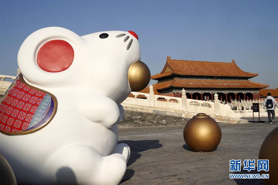 2019年12月27日在北京故宮太和門廣場拍攝的“吐寶鼠”。 由故宮博物院、騰訊出品的視頻節(jié)目《故宮賀歲》將于2020年1月1日正式上線,節(jié)目每周1集,每集時長30分鐘,計劃推出5集。節(jié)目里,主持人將與專家、嘉賓等一起在故宮探尋傳統(tǒng)過大年的習(xí)俗。 新華社記者 金良快 攝