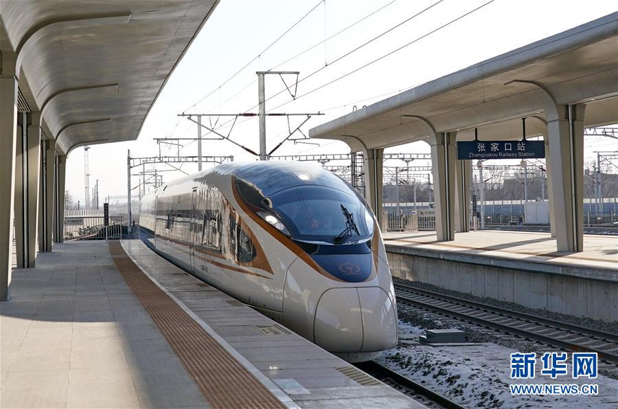 2019年12月30日,G2505次列車駛?cè)刖埜哞F張家口站。 當(dāng)日,北京至張家口高速鐵路開通運營,崇禮鐵路同步通車。 新華社記者 楊世堯 攝