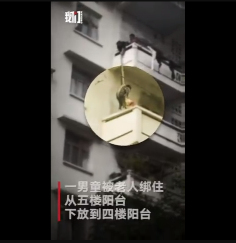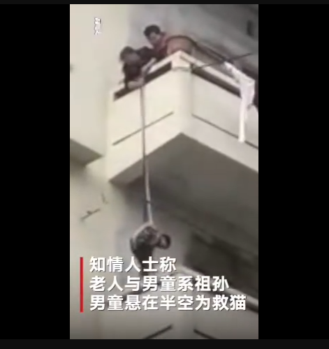 奶奶為救一只貓將孩子從高空用繩索吊下,心是好心,就是沒有安全意識!難怪有網友吐槽:老太太糊涂了嗎?