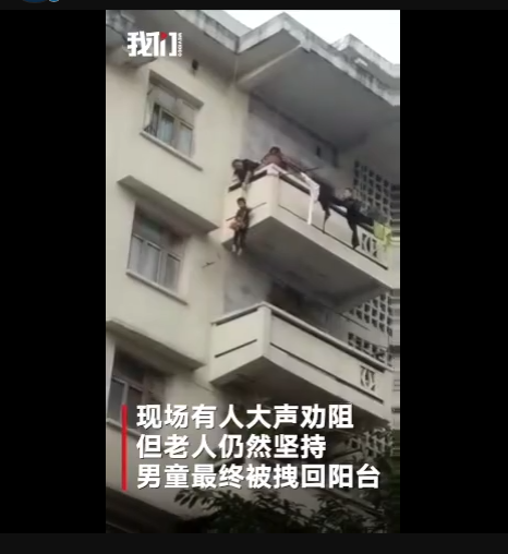 1月5日下午,四川南充市蓬安縣,一奶奶在百順街老百貨公司宿舍樓上,用一根繩子綁著孫子的腰,將其從五樓吊至三樓一窗戶遮雨臺上,只為救一只貓。此舉嚇得周圍鄰居紛紛呼喊:危險!網友:小孩子不懂事,老人是糊涂了嗎?到底誰是親的?