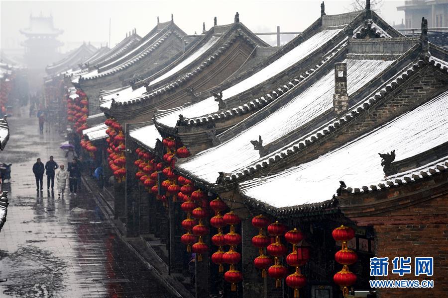 當(dāng)日,山西省平遙縣迎來(lái)降雪,雪中的平遙古城銀裝素裹,美景如畫(huà)。平遙古城是目前中國(guó)保存最完整的古代縣級(jí)城池之一,1997年被列入世界文化遺產(chǎn)名錄。