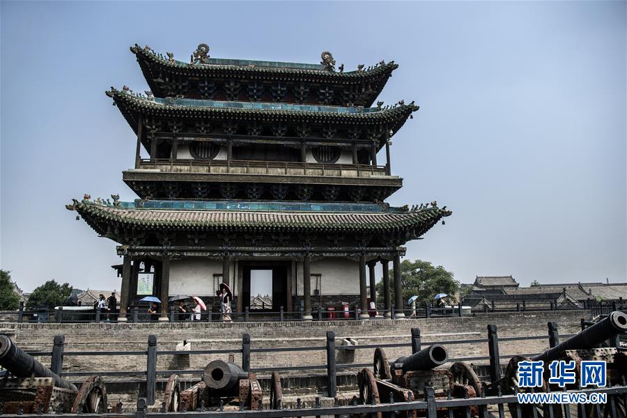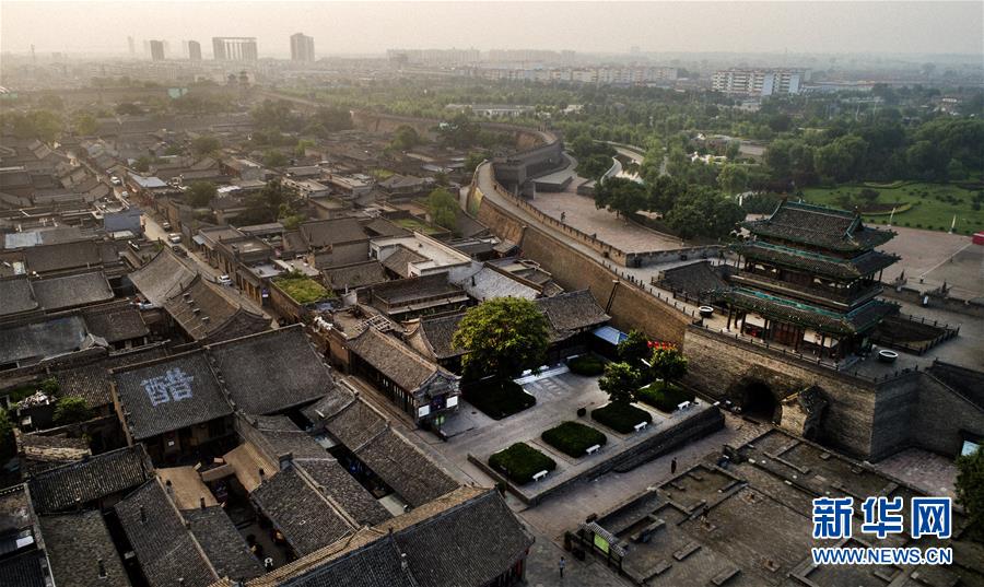 這是7月20日無(wú)人機(jī)拍攝的平遙古城北門(mén)。