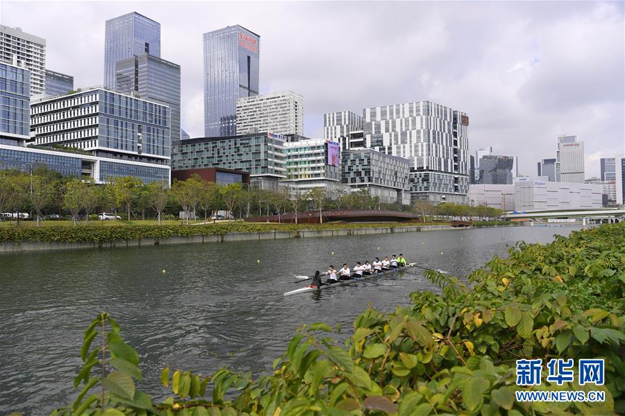 1月7日,賽艇愛好者在深圳大沙河上訓(xùn)練。 新華社記者 梁旭 攝